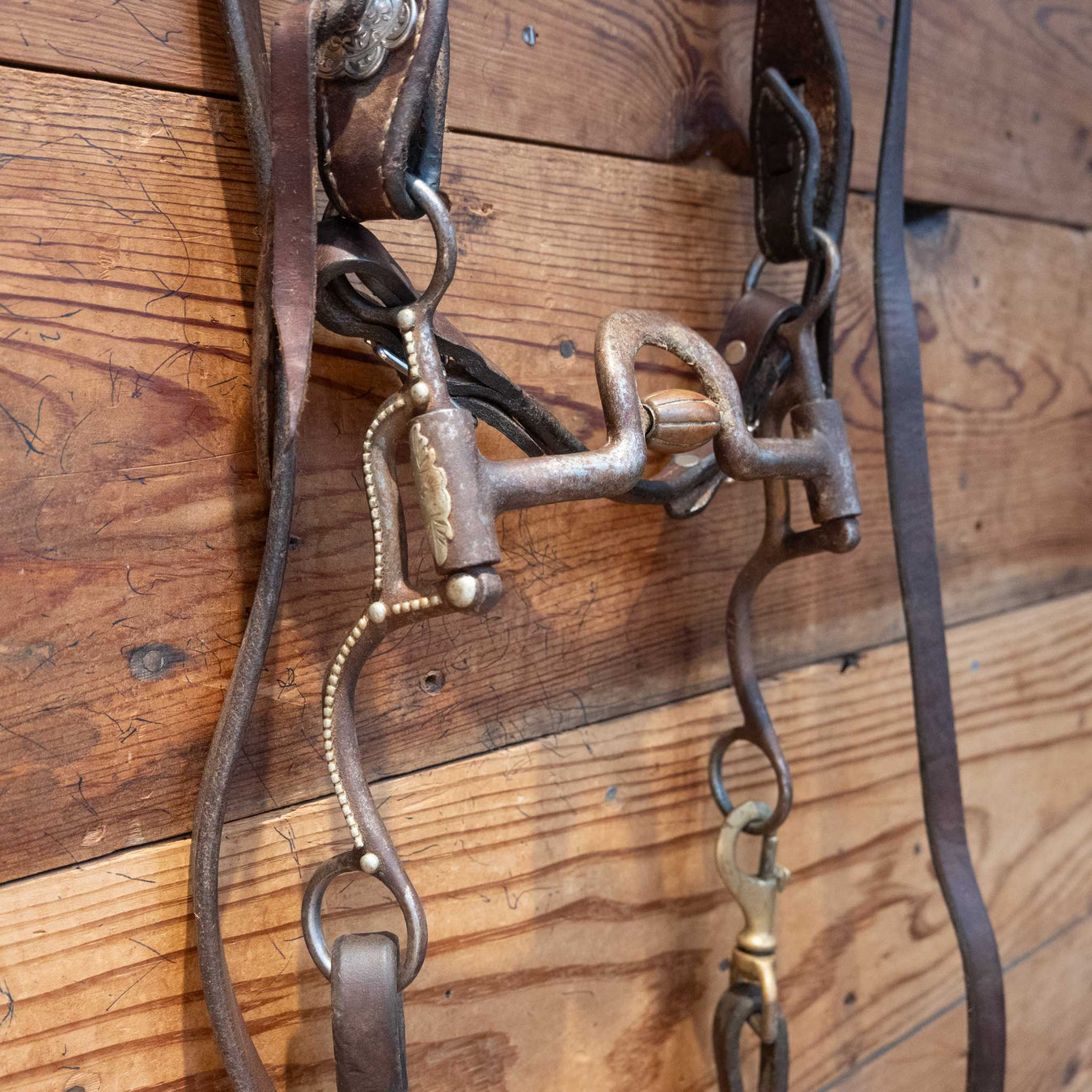 Shopmade**Vintage Handmade Bit with a Closed Port has an Old West look to it** No Maker Mark Mouthpiece: Closed Port Shank: 8" Silver Accents
