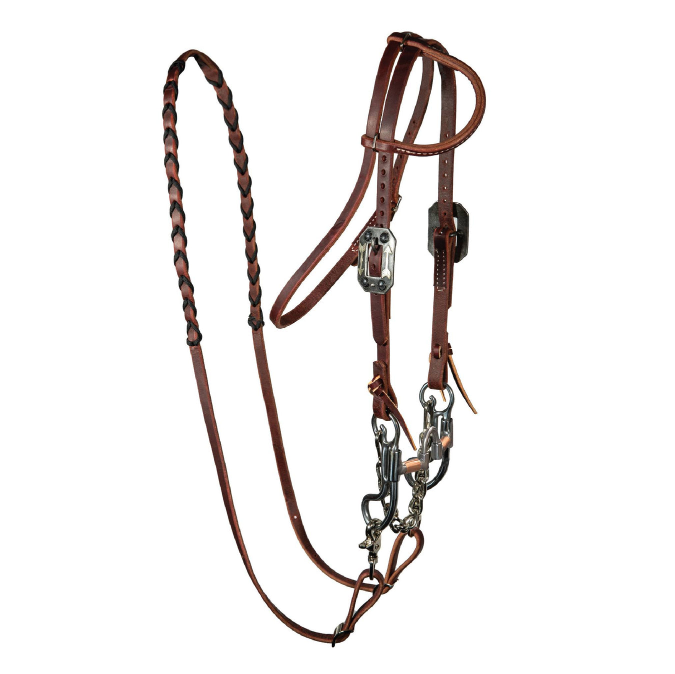 MISCHeadstall: New Browband Headstall Reins: Split Reins Mouthpiece: Twisted Wire Copper Snaffle Cheek: O-Ring Curb: Chain with Leather Straps