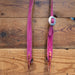 A pink roughout 3/4" headstall with traditional gunslinger stitching and a silver floral buckle. Simple, dependable gear. Each of these headstalls has a different buckle so be sure to check them out!