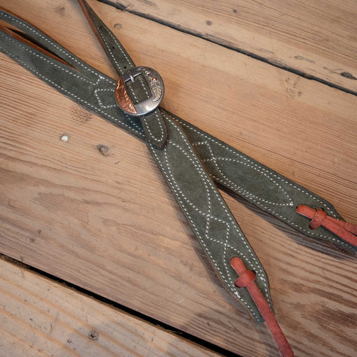 Teskey'sAn army green roughout 3/4" headstall with traditional gunslinger stitching and a floral buckle with copper accents. Simple, dependable gear. Each ...