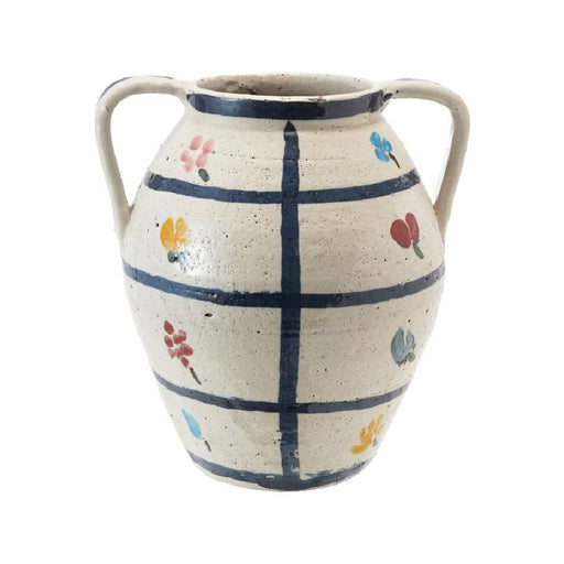 Creative Co-OpStyle # DG1189 10-1/4"L x 9"W x 11"H Hand-Painted Terra-cotta Urn w/ Flowers & Grid Pattern Crackle Glaze Multi Color (Each One Will Vary)