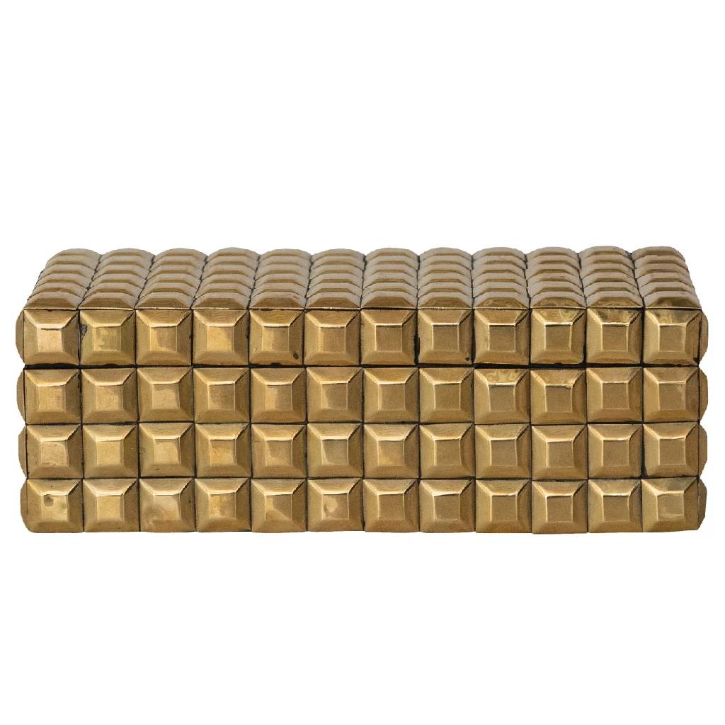 Creative Co-OpStyle # AH4038 Elevate your storage with this striking Metal Studded Gold Box. Featuring a rich gold finish accented with decorative metal studs, ...