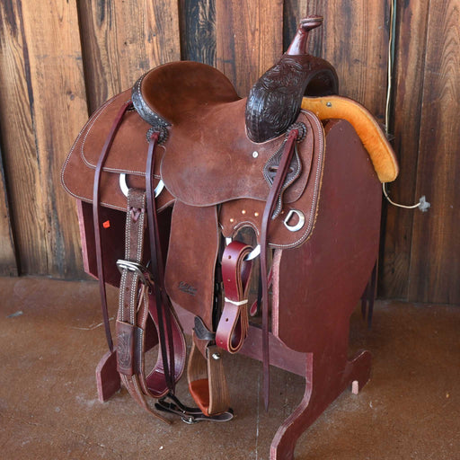 This used 16.5" Jeff Smith Ranch Cutter saddle comes in a heavy oil roughout tooling with a hard seat. For more information call a saddle salesman ...