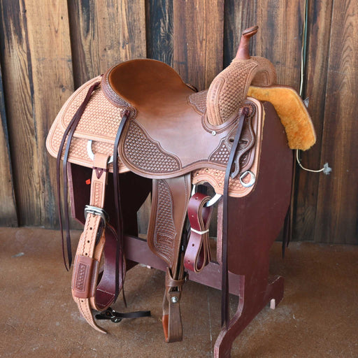 This used 14" Jeff Smith Barrel saddle comes in a heavy oil floral tooling with a hard seat. For more information call a saddle salesman today at 8...