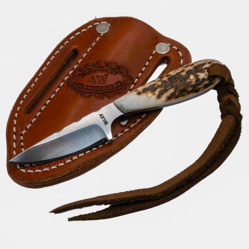 Justin WileyStyle # JUSTINWILEYCARBON Carbon Steel Fixed Blade Overall Length: 7" Blade Length: 3.5" Leather Sheath Included