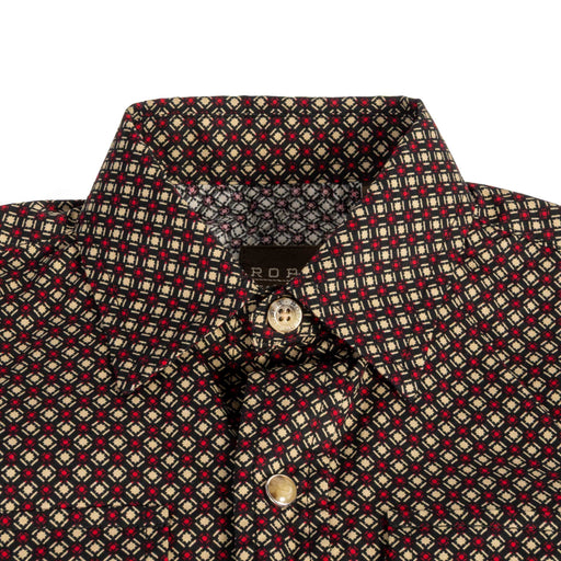Roper Apparel & FootwearStyle # 03-030-0225-1019 This classic boy's western shirt features a striking red star geometric print on a black background, crafted from premium ...