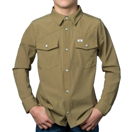 Ferrell BrandStyle # KSL3002333 The original CORE long sleeve snap shirt. Works hard, plays hard. Color: Khaki Genuine, western design Pearl snaps Breathable...