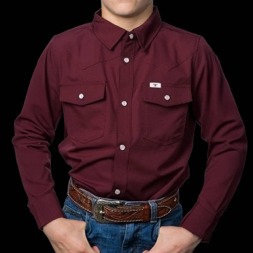 Ferrell BrandStyle # KSL3002331 The original CORE long sleeve snap shirt. Works hard, plays hard. Color: Maroon Genuine, western design Pearl snaps Breathabl...