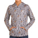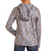 This taupe western print hoodie combines style with performance technology, featuring a protective UPF 50+ rating and quick-dry 100% polyester construction. The long sleeves and kangaroo pocket provide practical comfort, making it an ideal choice for young riders who need reliable sun protection and moisture-wicking capability during outdoor activities.