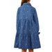 This denim dress features a medium wash with a charming bow print, snap button closure, and a classic collar neckline. Designed with long sleeves and convenient hip pockets, it’s made from 100% cotton for comfort and durability.
