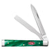 Handcrafted in the U.S.A., this classic American Case Baby Doc is about 2 7/8 inches long (folded/closed) and weighs approximately 1.2 ounces. The handle is smooth Green Pearl Kirinite with a Oval Red SparXX Script Inlay shield. The bolsters are Highly polished Nickel Silver. This knife utilizes a 2 1/4" Spear point blade and 2 1/4" Spatula blade. Stamped with pattern number 10282SP SS, the blade material is Tru-Sharp Surgical Stainless Steel with a mirror-polished finish. This Baby Doc is a professional-grade tool that comes with a Limited Lifetime Manufacturer's Warranty and is not designed nor intended to be used on or against humans. So, whether you're hunting for authentic cutlery to collect, a top quality knife to give as a gift, or a superior tool to use, don't pass this one up!