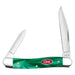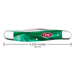 Handcrafted in the U.S.A., this classic American Case Medium Pen is about 3 3/8 inches long (folded/closed) and weighs approximately 1.2 ounces. The handle is smooth Green Pearl Kirinite with a Oval Red SparXX Script Inlay shield. The bolsters are Highly polished Nickel Silver. This knife utilizes a 2 1/2" Clip blade and 1 1/2" Pen blade. Stamped with pattern number 102087 SS, the blade material is Tru-Sharp Surgical Stainless Steel with a mirror-polished finish. This Medium Pen is a professional-grade tool that comes with a Limited Lifetime Manufacturer's Warranty and is not designed nor intended to be used on or against humans. So, whether you're hunting for authentic cutlery to collect, a top quality knife to give as a gift, or a superior tool to use, don't pass this one up!