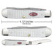 This Trapper is a part of the White Synthetic SparXX™ Family. The pure white handle is the perfect counterpart to the vibrant red shield. The Trapper gets its name from the consumer it was designed for. Because of its basic trapping and skinning blades and its light weight, it is a must-have knife for those who trap small game. It is a jack knife with two full length blades; a slender Clip and a long Spey. The Clip blade is commonly used as a multi-purpose blade and preferred for detail work while the Spey blade is commonly used as an all-purpose utility blade. This knife is constructed with Case Tru-Sharp™ stainless steel which is a special high-carbon steel that helps the blades hold an edge longer than conventional steel. It also offers extraordinary blade strength and corrosion resistance. Comes conveniently packaged in a box. Made in Bradford, PA, USA from domestic and imported materials.