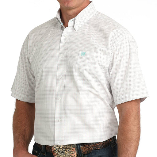 CinchStyle # MTW1402012 The Cinch Men's Pearl Snap Camp Shirt in white plaid combines classic Western style with modern comfort. This short-sleeve shirt...