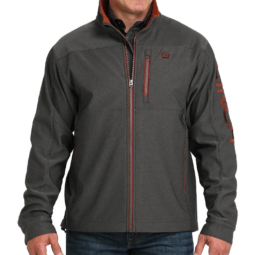 CinchStyle # MWJ1583010 This Cinch men's bonded jacket in charcoal features a red zipper and a single chest pocket alongside hip pockets for convenient ...