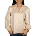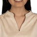 The Ivy Jane Ivory Suede Top features an elegant open V-neckline, gathered shoulder details, and 3/4 sleeves with a smocked finish. Made with a poly spandex blend for a comfortable and stylish fit.