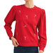 This red sweater features long puff sleeves and a classic crew neck, detailed with an embroidered martini glasses. It is finished with ribbed collar, cuffs, and hem for a refined fit. Crafted from a blend of 80% cotton and 20% polyester, it offers both comfort and durability.