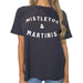 The Z Supply Mistletoe Boyfriend Tee features a festive "Mistletoes & Martinis" print, combining comfort and holiday fun in one easy-to-wear tee!