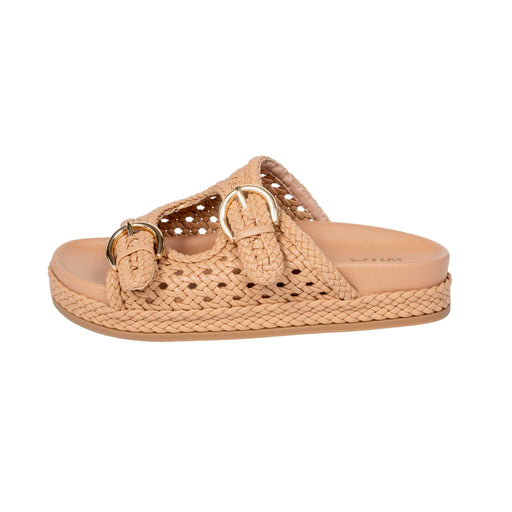 MIAStyle # GS148851 The MIA Trendy Nude Sandal features a chic nude color with a woven design and open toe silhouette. Equipped with double buckles fo...