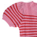 This Hayden Girl's Crochet Knit Sweater features a pink and red stripe print with a ribbed collar, cuffs, and hem. Made from 100% acrylic, it offers comfortable warmth and a cozy fit.
