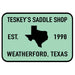 Teskey's Saddle Shop - Est. 98 vinyl rounded rectangle sticker, Sea foam Green & Black. 4" x 2.75".