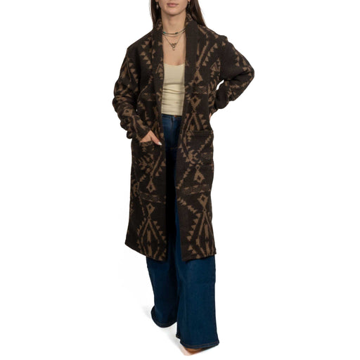 HooeyStyle # HJ134BRAZ Designed with a brown and tan Aztec pattern, this women's duster features warm knit fabric and convenient front hand pockets. It ...