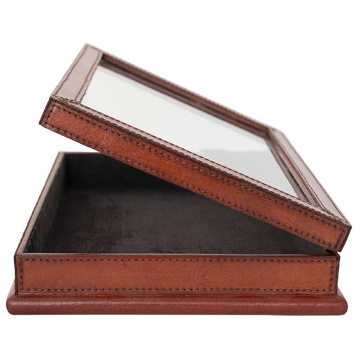 Creative Co-OpStyle # DG1644 Elevate your storage with this handmade leather box, crafted from rich brown leather and topped with a sleek glass lid. The magnetic...