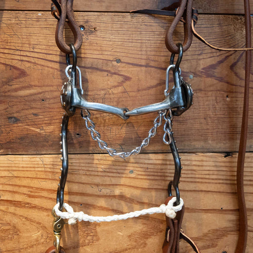 HeelerMaker: Heeler Headstall: Leather Single Ear Reins: Leather Rope Reins Mouthpiece: Combination Correction with a Copper Bar Right Side and Chain Le...