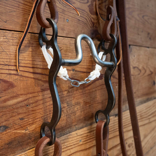 HeelerMaker: Heeler Headstall: Leather Single Ear Reins: Leather Rope Reins Mouthpiece: Combination Correction with a Copper Bar Right Side and Chain Le...