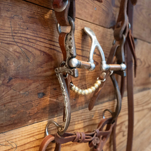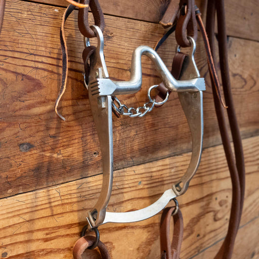 D. StanfillMaker: D. Stanfill Headstall: Leather Single Ear Reins: Leather Rope Reins Mouthpiece: Chain Cheek: 8 1/2" Curb: Leather Measurements are Approxi...