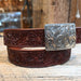 Handmade Casey Tew fully tooled mahogany floral leather belt.