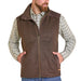 This vest comes in dark brown with a sleeveless design featuring a micro check pattern. It has a zip-up front and hip pockets for convenience. Fully lined, it’s made of 90% polyester and 10% wool for comfortable wear.