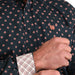 Built for the modern cowboy, this Cinch button-down shirt combines style with everyday practicality. The navy all-over geometric print brings visual interest to your wardrobe, while the 100% cotton construction keeps you comfortable through long days. Long sleeves and a convenient left chest pocket provide functionality, and the embroidered Cinch logo shows your commitment to quality western wear. A reliable choice you can count on.