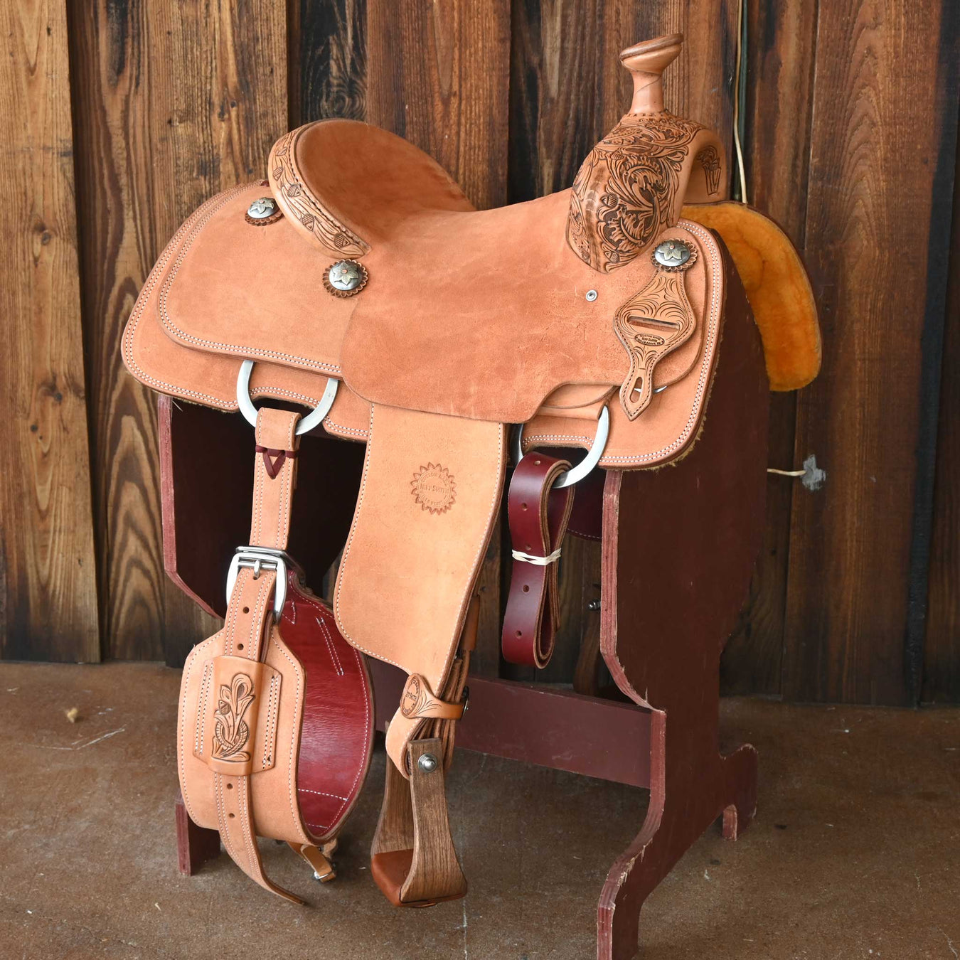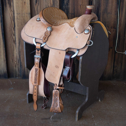A. ReedThis used 15" A. Reed Team Roping saddle comes in a heavy oil oak and acorn tooling with a hard seat. For more information call a saddle salesman t...