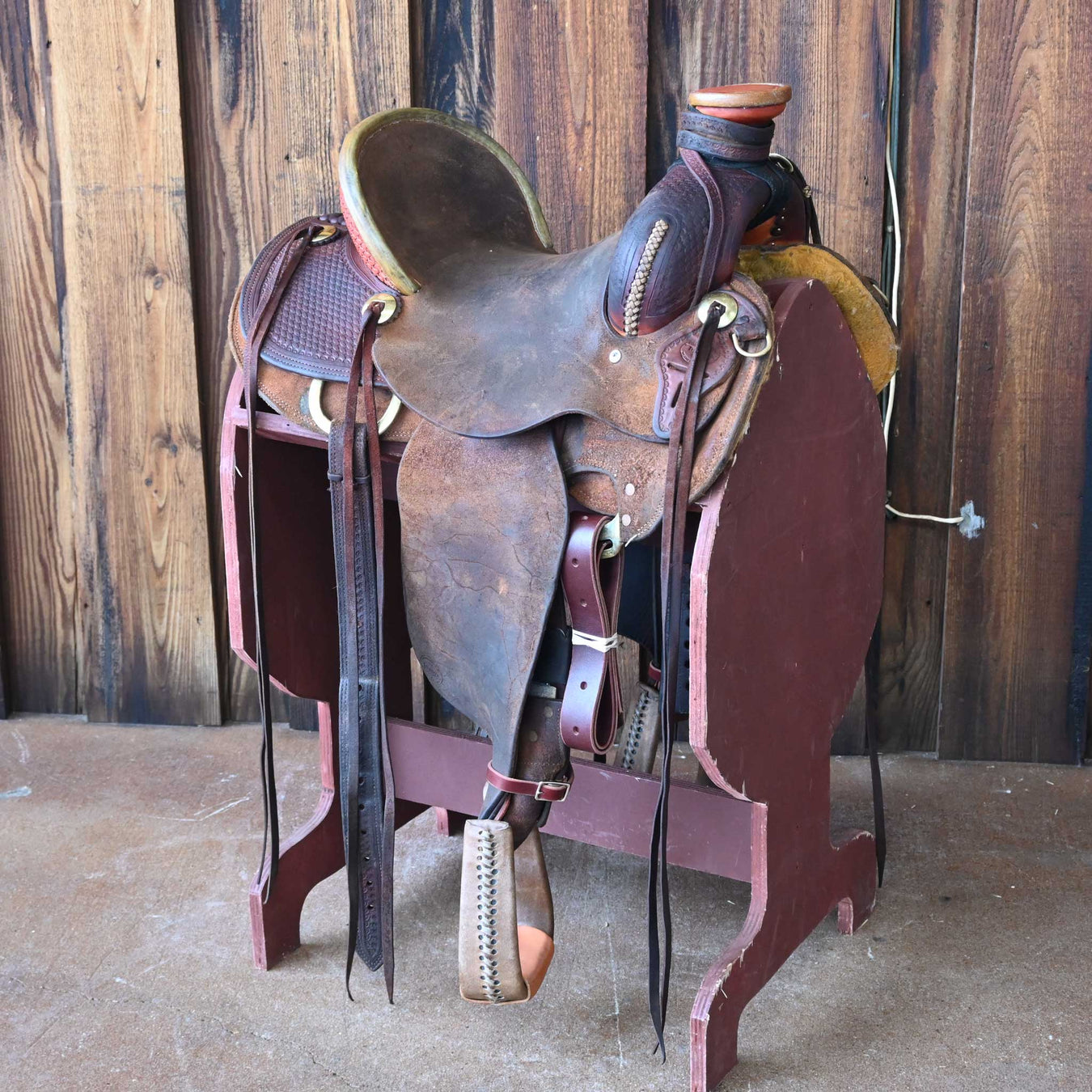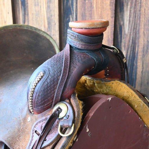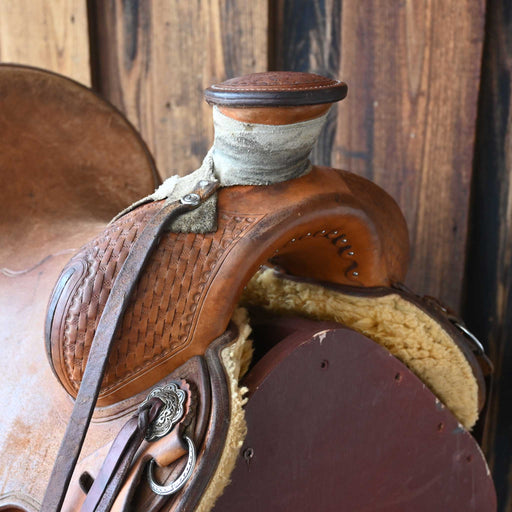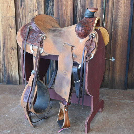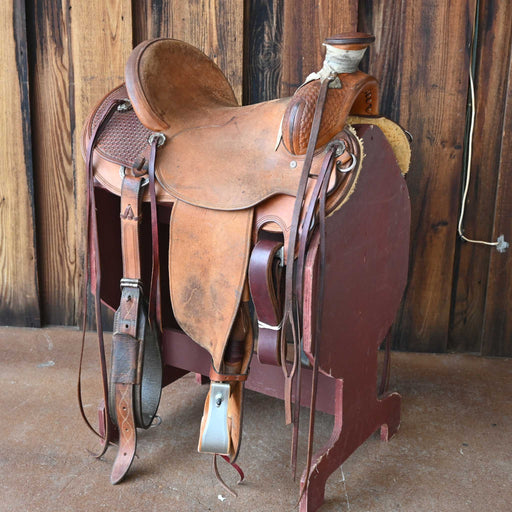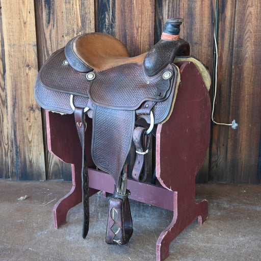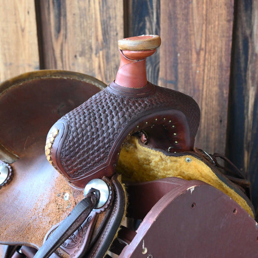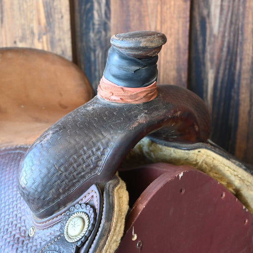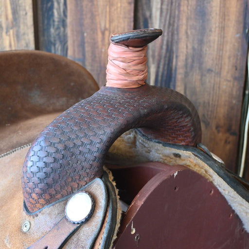 SHOPMADEThis used 15.5" Post Horn saddle comes in a heavy oil basket tooling with a hard seat. For more information call a saddle salesman today at 888-955...