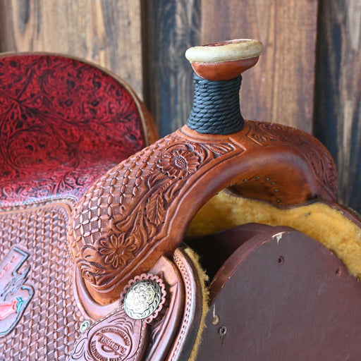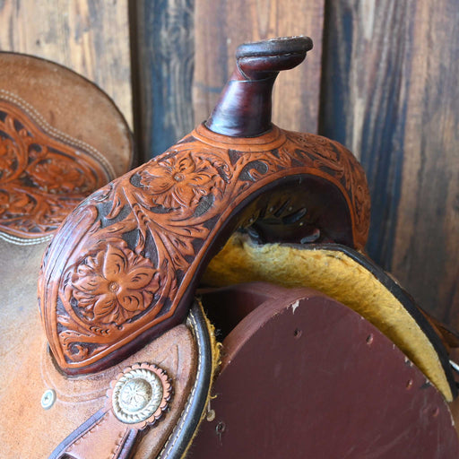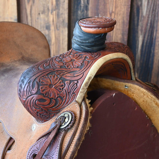 Bar J SaddleryThis used 15" Bar J Barrel saddle comes in a heavy oil floral tooling with a padded seat. For more information call a saddle salesman today at 888-...