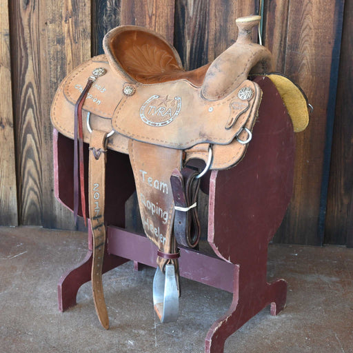 View full details15" USED RYON'S MARK HURLEY TEAM ROPING SADDLE