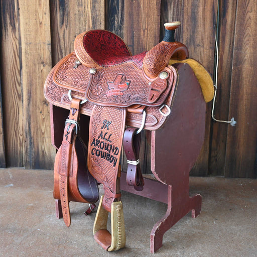 Gary AnglinThis used 16" Gary Anglin Ranch saddle comes in a heavy oil floral and trophy tooling with a padded seat. For more information call a saddle salesm...