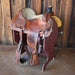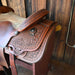 This used 15.5" Teskey's Team Roping saddle comes in a heavy oil trophy, oak and acorn tooling with a lightly padded seat. For more information call a saddle salesman today at 888-955-2955.