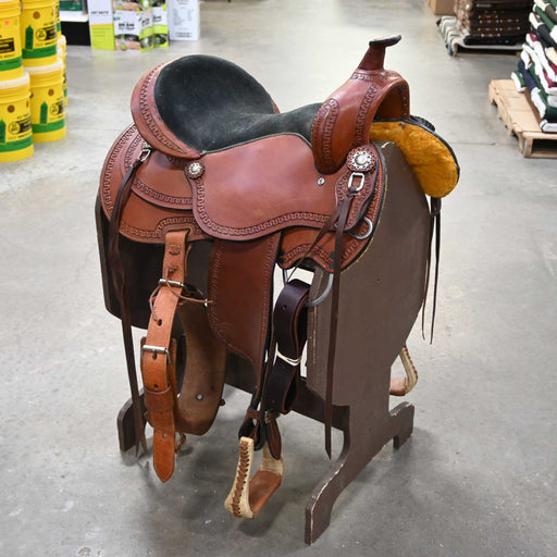 This used 15" Teskey's Ranch saddle comes in a heavy oil floral tooling with a hard seat. For more information call a saddle salesman today at 888-...