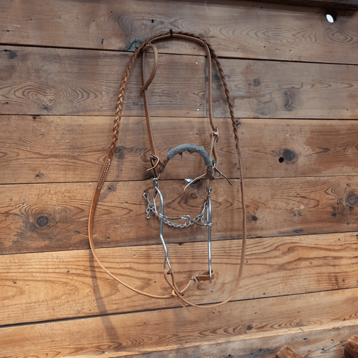MISCMouthpiece: Nylon Nose Hackamore Headstall: New Leather Browband with Rawhide Accents Reins: New Leather Rope Reins Curb: Chain *This Item does ...