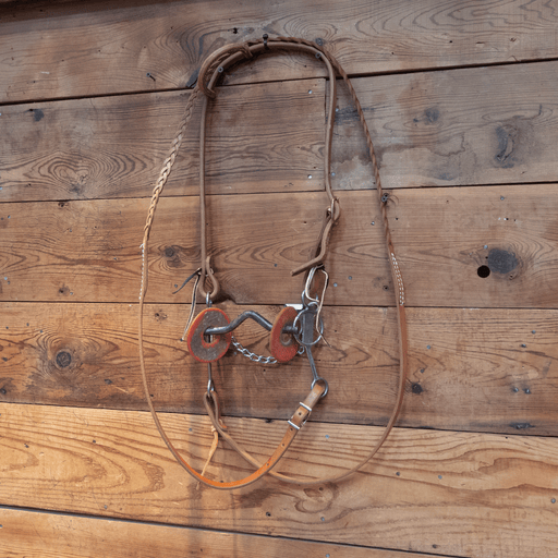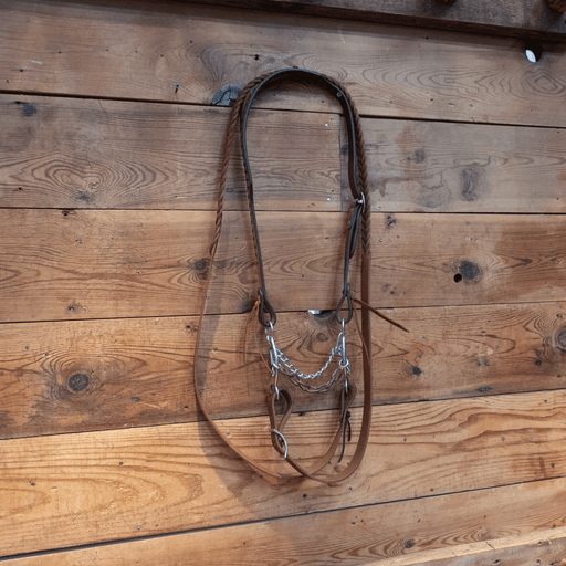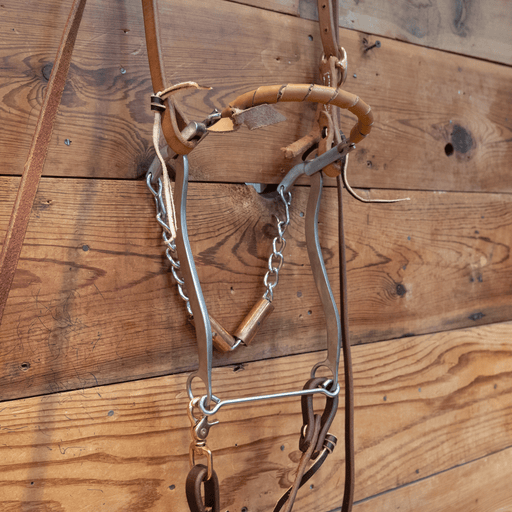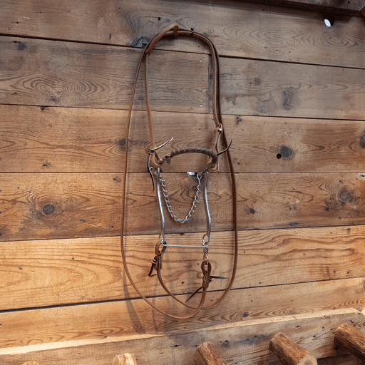 MISCMouthpiece: Hackamore Shank: 9" Headstall: Leather Single Ear Reins: Leather Rope Reins Curb: Chain with Copper Rollers *This Item does not quali...