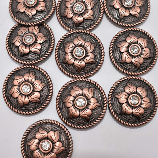 View full detailsNEW Brass Floral Rhinestone Concho Set Of 10