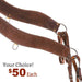 This 4" wide chestnut leather tripping collar is accented with white stitching, dark accents, and brown edging.