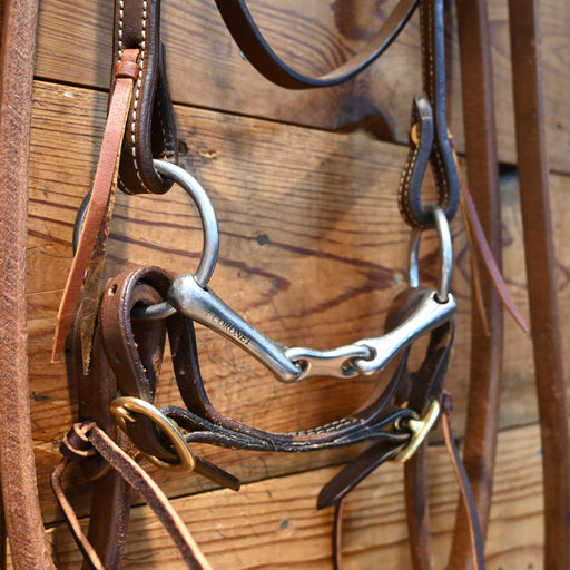 MISCMouthpiece: Smooth Snaffle Cheek: 7 3/4" Headstall: Leather Split Ear Reins: Leather Split Reins Curb: Leather Measurements are Approximate *This ...