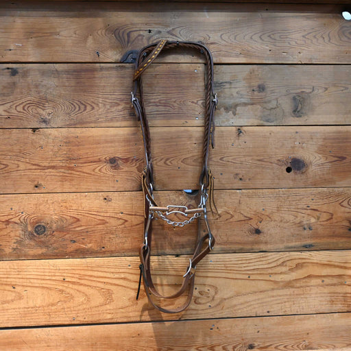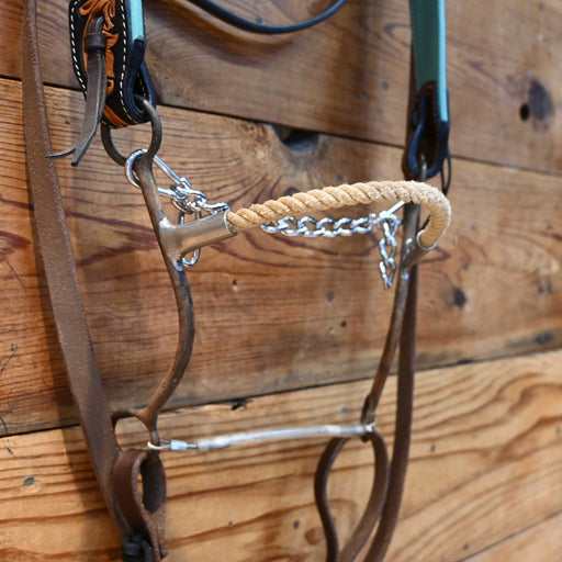MISCMouthpiece: Dogbone with a Copper Roller Cheek: 7 1/2" Headstall: Leather Single Ear Reins: Braided Nylon Rope Reins Curb: Chain *This Item does...