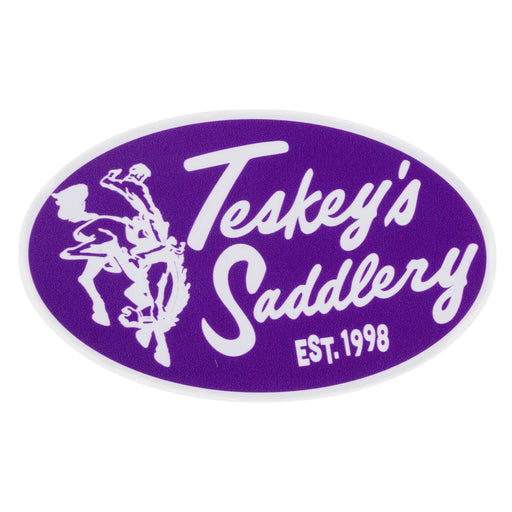 Teskey'sColor: Purple/White Teskey's Saddlery Retro Large Oval Vinyl Sticker 4" x 2.5"
