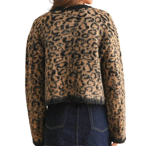 Miou MuseStyle # J5115 This cardigan features a vibrant multi leopard print design with button closure. It includes ribbed details at the collar, cuffs, and...