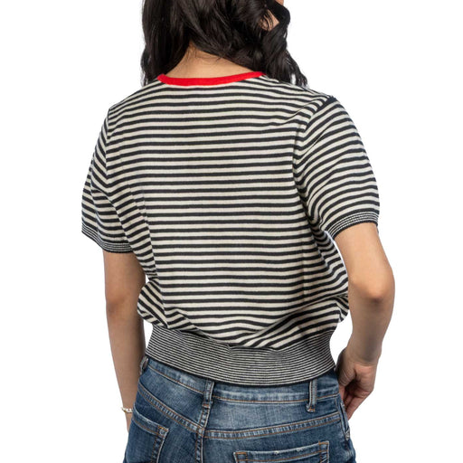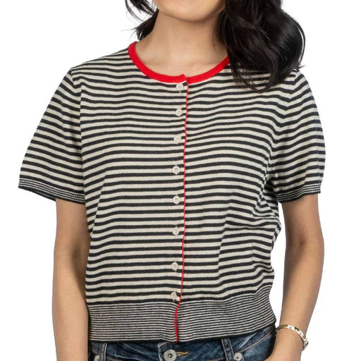 MOD REFStyle # OAR0980 The Faye Cardigan is a relaxed short-sleeve cardigan in midweight striped knit. Cut with a crewneck in contrast color and finished ...