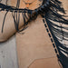 Restock!! Handmade Austin Valimont stepthrough roughout leather accented fringe, black buckstitch and a tie ring. These pair of chaps are also made with two pockets.